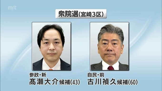 最後に、宮崎3区に立候補しているのは参政党・新人の高瀬大介氏、自民党・前職の古川禎久氏の2人です。