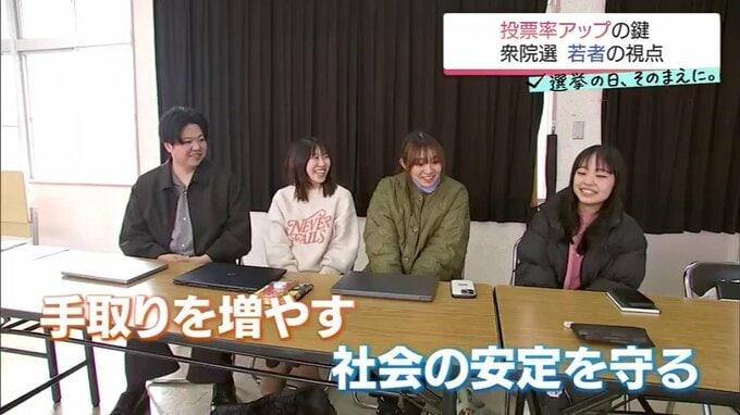 まず、学生たちが注目したのは、「手取りを増やす」か、「社会の安定を守るか」という争点。