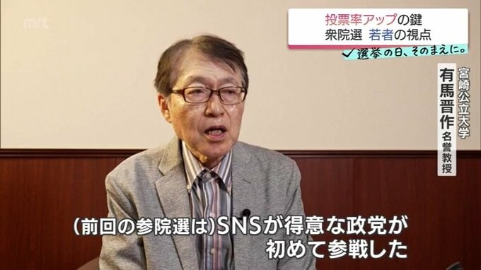「(前回の参院選は)SNSが得意な政党が初めて参戦した。若者は今まで新聞やテレビよりSNSで情報を入手するのが多かったので、それがマッチして票の掘り起こしにつながったと思うし、いろんな政党がSNSを使い始めたことも若者の投票率が向上した要因だと思う」