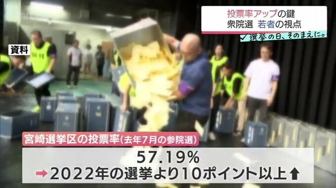 宮崎県選挙管理委員会によりますと、去年7月に行われた参院選で、宮崎選挙区に投票率は、57.19パーセント。その前の2022年の選挙より10ポイント以上上昇。