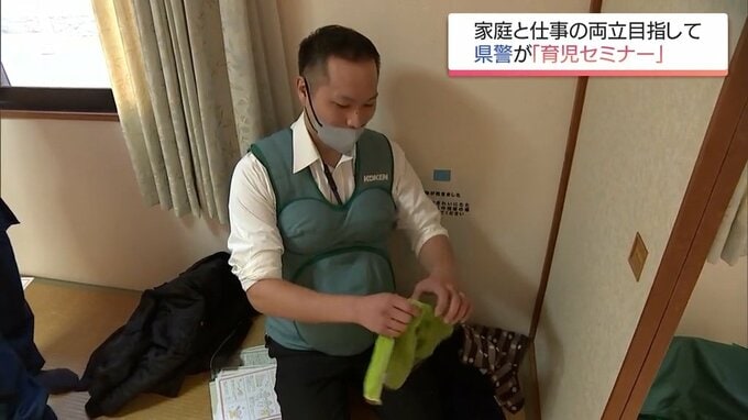 「しゃがむのがきついです」妊婦体験スーツで家事 育児休業を取得予定の男性職員を対象に 宮崎県警察本部で「育児セミナー」 2026年2月4日(水) 19:01 国内 暮らし・マネー 家庭と仕事の両立を目指します。宮崎県警察本部は、これから育児休業を取得予定の男性職員を対象に「育児セミナー」を開きました。セミナーには、今後、育児休業の取得を予定、または検討している県警の男性職員15…