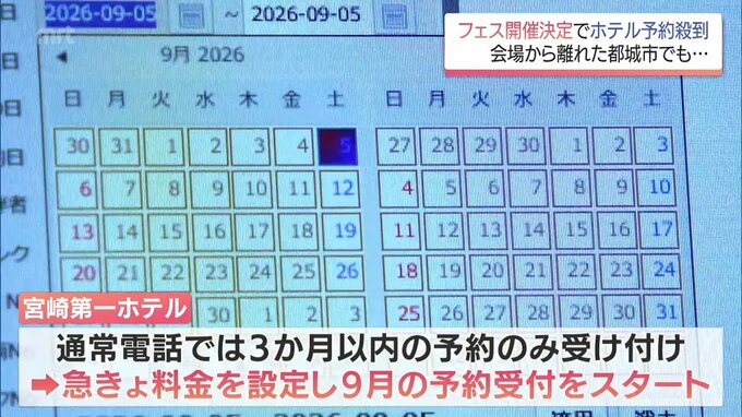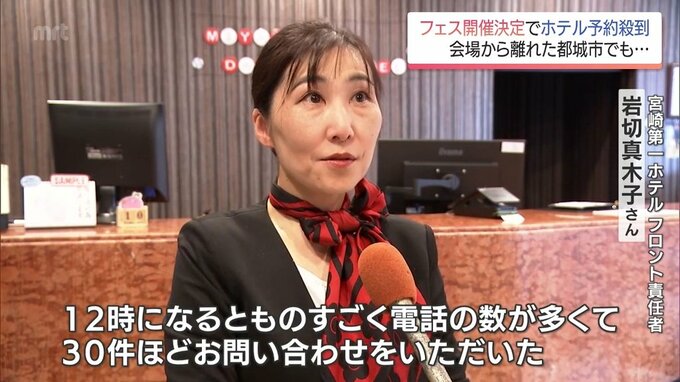宮崎市の宮崎第一ホテル。正午に「ひなたフェス」開催が発表されると、問い合わせの電話が相次ぎました。