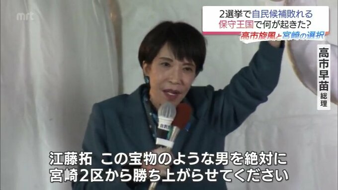 高市総理は、自身のコメを巡る失言で厳しい戦いを強いられていた宮崎2区の江藤拓氏を聴衆の前でフォロー。