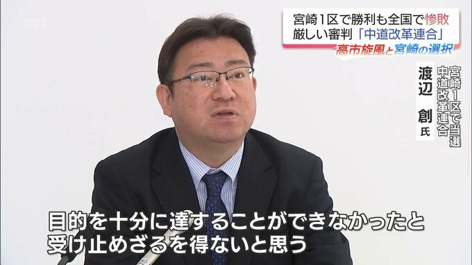 (宮崎1区で当選・中道改革連合・渡辺創氏)「我々が主張して必要だといったこと自体が間違っていたとは思っていませんが、それを十分に浸透させ、高市さんの高い人気が広がっている状況の中で目的を十分に達することができなかったと受け止めざるを得ないというふうに思っています」