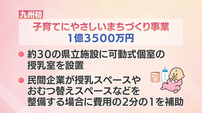 これは、図書館など県立のおよそ30の施設に、可動式個室の授乳室を設置するほか、民間企業が授乳スペースなどを整備する場合にも費用の2分の1を補助するものです。