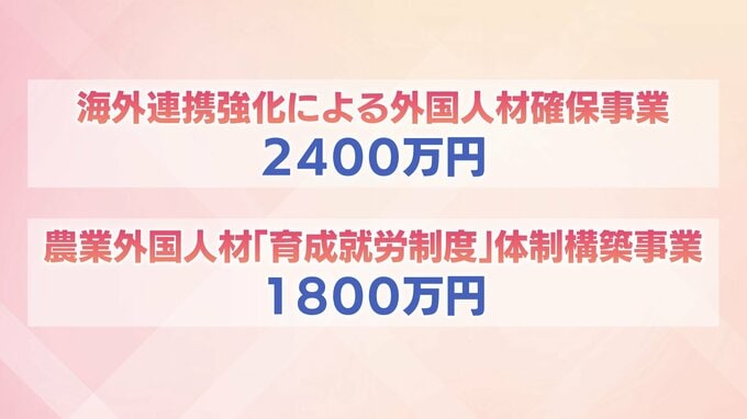例えば、企業と外国人材のマッチングの仕組みを構築することや、農業の担い手となる外国人材の受け入れ体制を構築するための事業が盛り込まれています。
