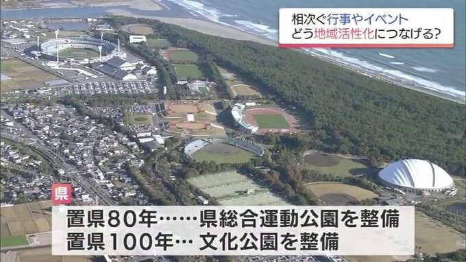 県は、置県80年に県総合運動公園を、置県100年に文化公園を整備していて、こうした施設が、スポーツランドみやざきや文化振興の礎となってきました。