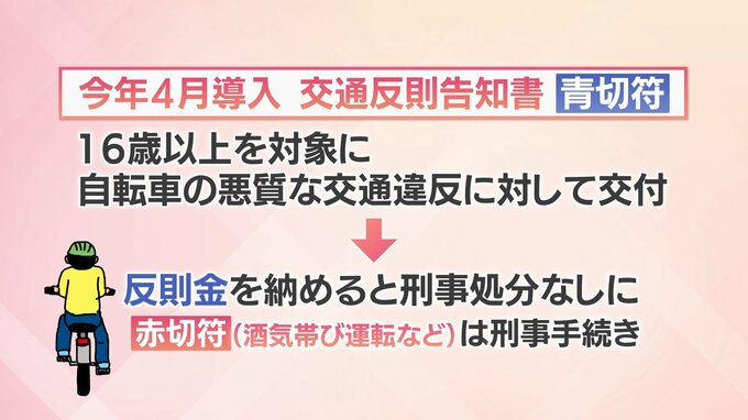 「自転車の(交通)反則通告制度が導入されるからと言って、自転車の基本的な交通ルールが変わるわけではないので、自分の身を守るということと交通ルールを守ることを意識してもらいたい」