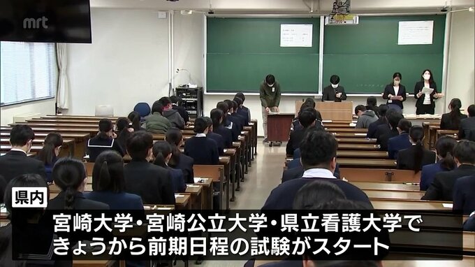 国公立大学の二次試験 前期日程が始まる 宮崎大学では5つの学部に1420人が志願 2026年2月25日(水) 12:04 国内 暮らし・マネー 国公立大学の二次試験前期日程が始まり、宮崎県内でも多くの受験生が試験に臨んでいます。県内では、宮崎大学と宮崎公立大学、それに、県立看護大学で25日から前期日程の試験がスタートしました。このうち、宮崎大…