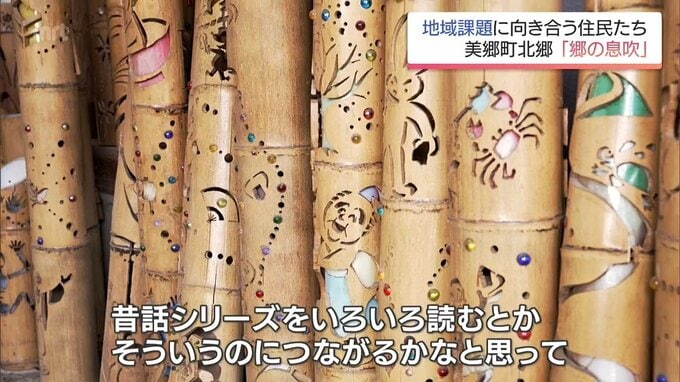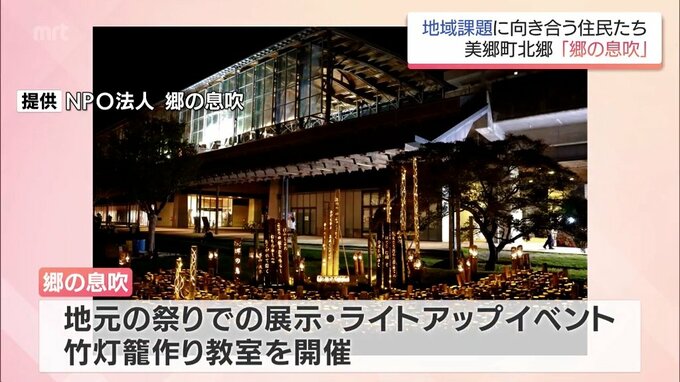 「郷の息吹」ではさまざまな絵柄や文字を彫った竹灯籠を制作。