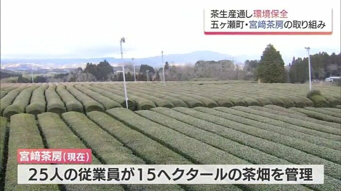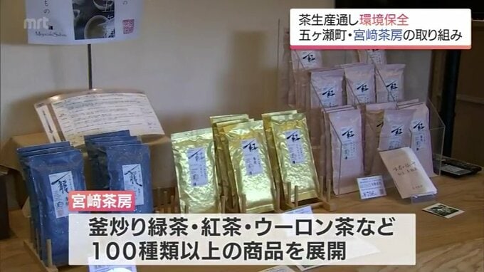 宮﨑茶房では現在、25人の従業員が15ヘクタールの茶畑を管理し、釜炒り緑茶や紅茶、それに、ウーロン茶など100種類以上の商品を展開。
