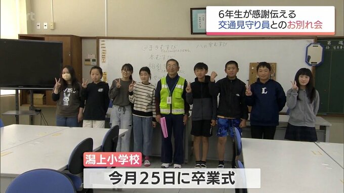 卒業を前に感謝の思いを伝える 日南市の小学校で6年生と交通見守り員の男性とのお別れ会 2026年3月17日(火) 19:00 国内 感謝の思いを伝えました。宮崎県日南市の小学校では、卒業式を間近に控えた6年生と、毎日、登校を見守った交通見守り員の男性とのお別れ会が開かれました。潟上小学校で開かれた6年生とのお別れ会に招かれたのは交…