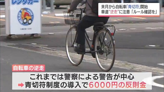 自転車の逆走についてはこれまで、警察による警告が中心となっていましたが、青切符制度が導入されることで6000円の反則金が科されることになります。