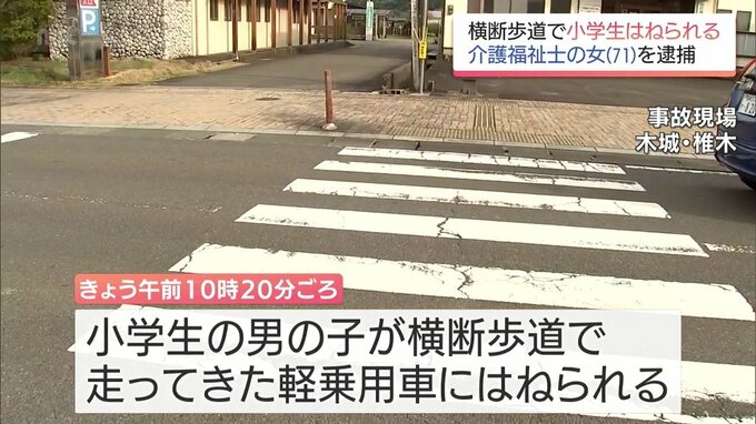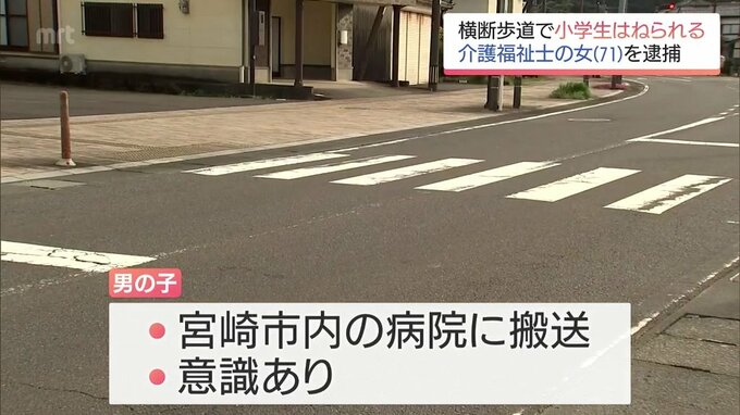 事故があったのは、木城町椎木の県道で、31日午前10時20分ごろ、小学生の男の子が横断歩道を歩いて渡っていたところ、左から走ってきた軽乗用車にはねられました。