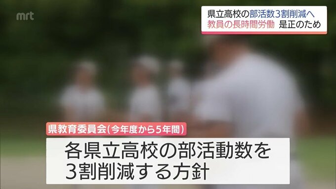 宮崎県教育委員会は、各県立高校の部活動の数を5年間で3割削減する方針を決めました。