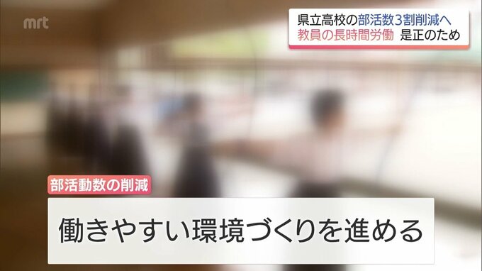 部活動の数を減らすことで各部の顧問の人数を増やし、交代で休みを取るなど働きやすい環境づくりを進めたいとしています。