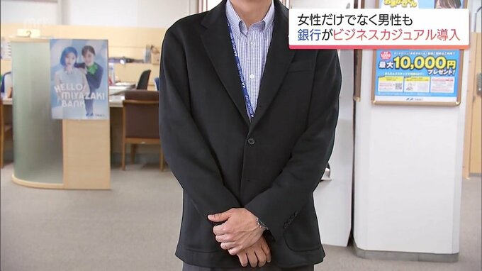 銀行の「当たり前」に変化 宮崎銀行 制服を完全廃止し男性もビジネスカジュアル導入へ 2026年4月6日(月) 19:00 国内 宮崎銀行は、この春から女性行員だけでなく、男性行員も含めたビジネスカジュアルを導入しました。その狙いとは。(田中久泰記者)「制服での接客が当たり前だった銀行窓口。宮崎銀行では、現在、制服を着用してい…