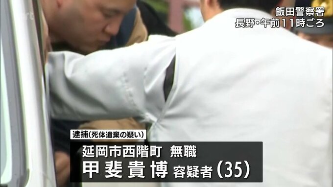 長野県の山中に高齢女性の遺体を遺棄した疑い 延岡市の男(35)を逮捕 男と母親には行方不明届 殺害ほのめかす供述も 2026年4月7日(火) 12:05 国内 長野県の山中に高齢の女性の遺体を遺棄したとして、宮崎県延岡市に住む35歳の男が逮捕されました。男と母親には行方不明届が出されていて、男は殺害についてもほのめかしているということです。死体遺棄の疑いで逮…