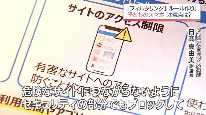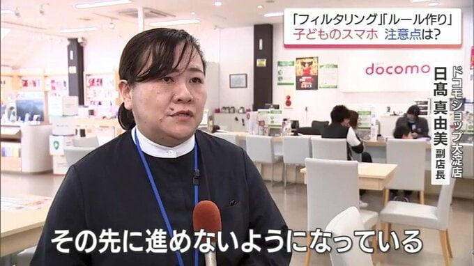 「年齢に応じてLINEが使えるとか、YouTubeが見られるとか、そういう規制を家族で話し合いをして規制をかけるということと、危険なサイトに繋がらないようにセキュリティの部分でもブロックしてその先に進めないようにするというようになっている」
