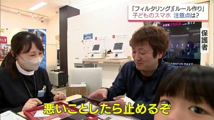 中には子どもが月に4,5万円ほど使ってしまったケースもあるそうで、先ほどの親子も店員からフィルタリングの説明を受けていました。