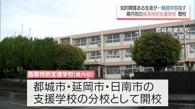 知的障害のある生徒が一般就労目指す「高等特別支援学校」 都城・延岡・日南に宮崎県内で初開校 2026年4月10日(金) 19:00 国内 知的障害のある生徒が一般就労を目指す「高等特別支援学校」が宮崎県内で初めて開校しました。学校は都城市、延岡市、それに日南市に設けられています。県内初の「高等特別支援学校」は都城市、延岡市、それに、日…