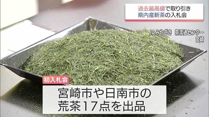 宮崎県産の新茶 今年初の入札会 過去10年の最高値を更新 2026年4月14日(火) 12:06 国内 宮崎県内で生産された新茶の今年初めての入札会が宮崎市で開かれ、過去最高値で取り引きされました。14日の入札会では、宮崎市や日南市の煎茶などに製品化される前の荒茶17点が出品され、取り引き業者が一つ一つ手…