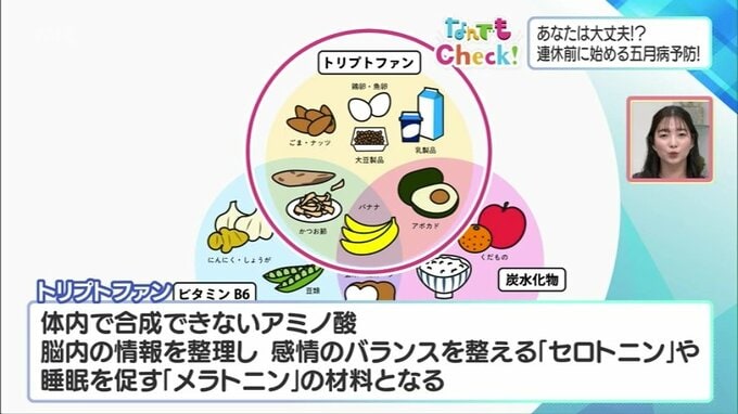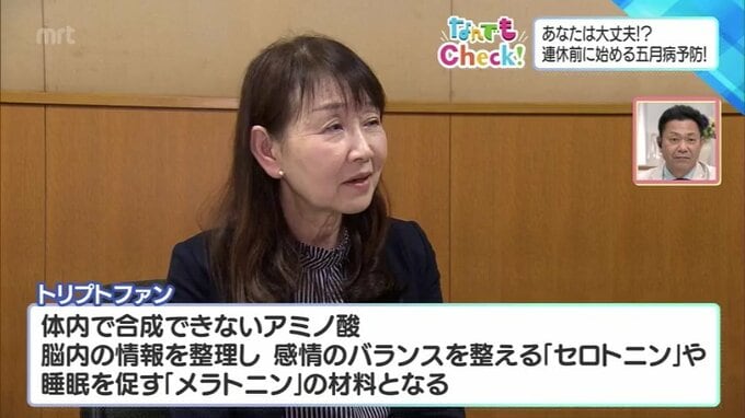 「朝、できれば朝食のところでトリプトファンっていう、セロトニンをつくる合成材料となるようなものを積極的に取り入れることが大事です」