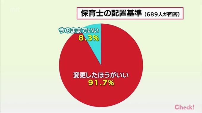 こうした現在の配置基準について、県内の保育士にアンケートを実施したところ、9割以上が見直しを訴える結果となりました。