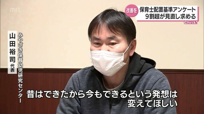 アンケートを行わった「みやざき保育幼児研究センター」の代表で、南九州大学の山田裕司准教授は、特に4歳・5歳児の配置基準は、1948年以降、70年以上変わっていないとして、時代に合わせて見直すべきと主張します。