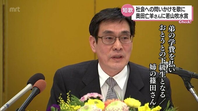 優れた短歌を詠んだ人に贈られる「若山牧水賞」受賞の奥田亡羊さん 宮崎市で授賞式 2023年2月21日(火) 19:00 国内 優れた短歌を詠んだ人に贈られる「若山牧水賞」の授賞式が宮崎市で行われ、今年度の受賞者、奥田亡羊さんに賞状などが贈られました。若山牧水賞は、日向市東郷町出身の歌人、若山牧水の功績を顕彰しようと設けられ…