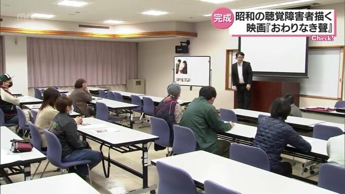 宮崎市の県立聴覚障害者センターで開かれた短編映画『おわりなき聲(こえ)』の試写会。