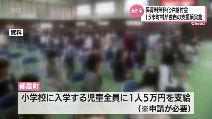 MRTが、宮崎県内すべての市町村に取材したところ、新年度から、15の市町村が、医療費の助成や給食費の無償化など、独自の子育て支援策を実施することが分かりました。