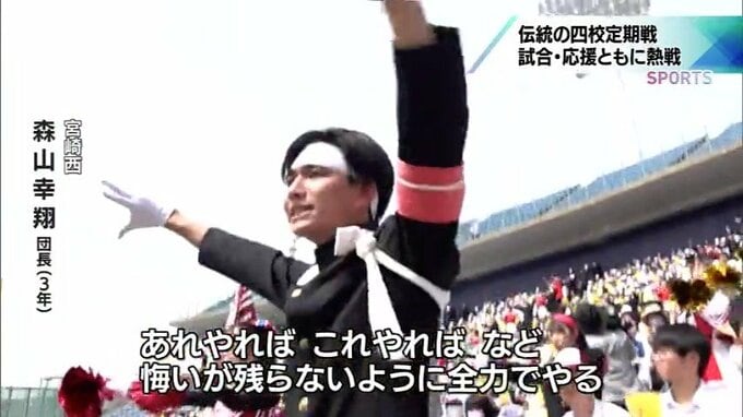 (宮崎西高校 森山幸翔団長・3年)「どこの応援団やチアよりも大きな声を出して、終わったあとにあれやればこれやればなど悔いが残らないように全力でやります!」
