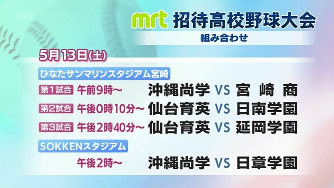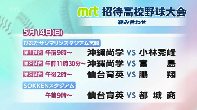 全国の強豪校と宮崎県勢が対戦するMRT招待高校野球の試合日程です。