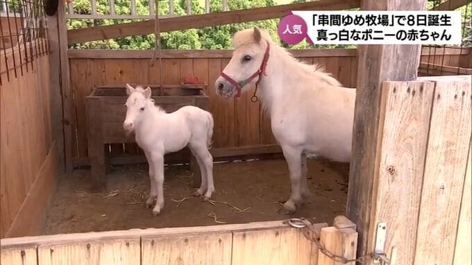 真っ白なポニーの赤ちゃん 串間市の観光牧場で誕生 2023年5月12日(金) 19:00 国内 話題・グルメ 宮崎県串間市の観光牧場で、今月、真っ白なポニーの赤ちゃんが産まれ、人気を集めています。全身真っ白な毛に覆われたポニーの赤ちゃん。今月8日、串間市の観光牧場、「串間ゆめ牧場」で産まれた「らん」です。生後…