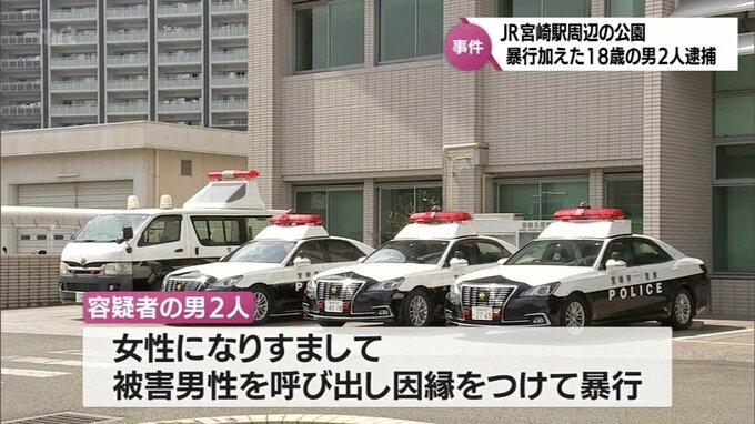 警察の調べによりますと、2人は、先月12日午後8時50分ごろ、JR宮崎駅周辺の公園で、面識のない20代の男性に顔や胸を殴るなどの暴行を加え、鼻の骨を折るなどのけがを負わせた疑いが持たれています。