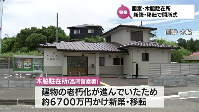 国富町の木脇駐在所が新築・移転 地域住民が立ち寄りやすいよう来客スペースも 2023年6月22日(木) 19:00 国内 宮崎県・高岡警察署の木脇駐在所が老朽化に伴って新築・移転され、22日、開所式がありました。国富町の木脇駐在所は、建物の老朽化が進んでいたため、およそ6700万円をかけて新築・移転しました。22日は関係者が出…