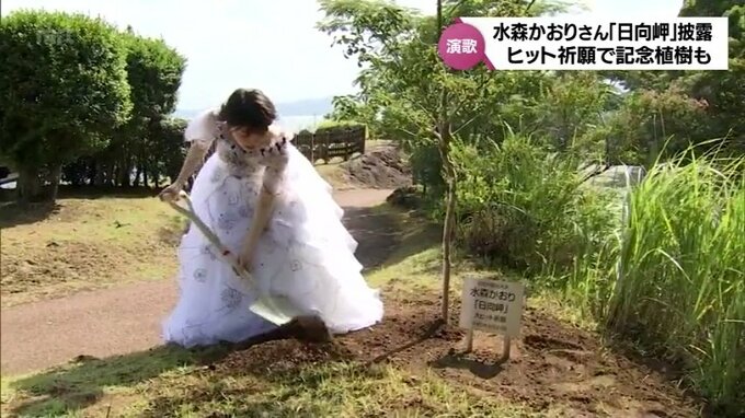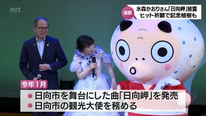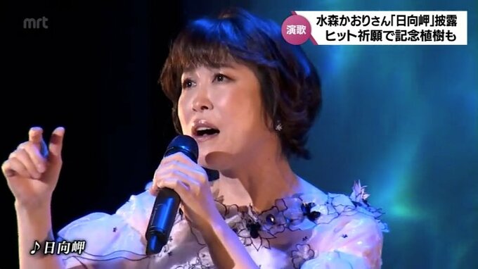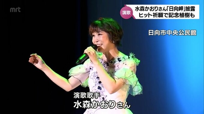 日向市を舞台にした曲「日向岬」を発売した演歌歌手の水森かおりさんが、22日、日向市民を前に歌声を披露しました。
