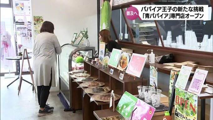 これまで、イベントや通信販売を通して青パパイアの普及に取り組んできた岩本さんですが、今回、新富町商工会が新規事業者を支援するチャレンジショップに出店しました。