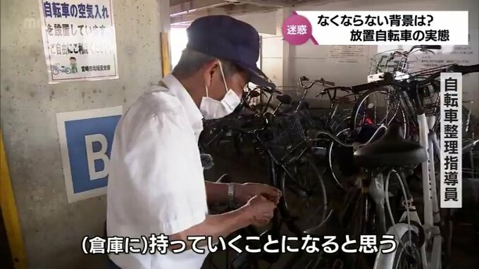 「あっ、これはパンクしてますよね。明らかにこういうのは乗っていないから、こういう自転車は多分『搬入』って言いますか(倉庫に)持っていくことになると思うんですけどね」