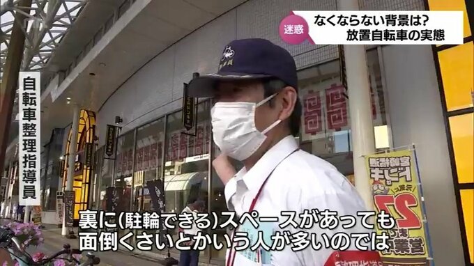 「やっぱり(店を利用する)お客さん(自転車放置禁止区域というのを)知らずに止められる方多いんですよね。1番多いのは、すぐ終わって帰ってくるので、ちょっといいだろうとか、裏に(駐輪できる)スペースがあっても面倒くさいとかいう方が多いのじゃないかな」