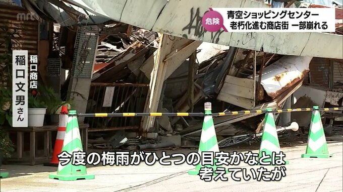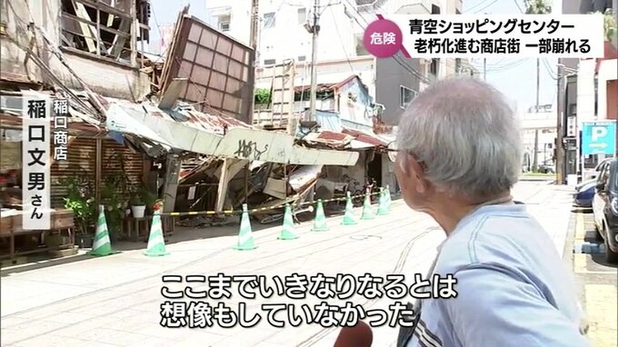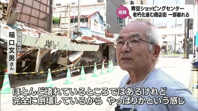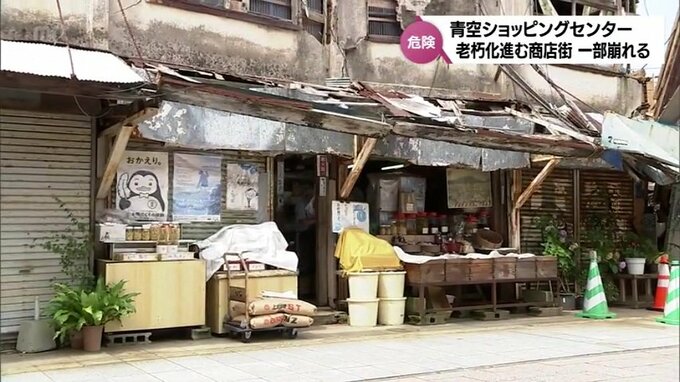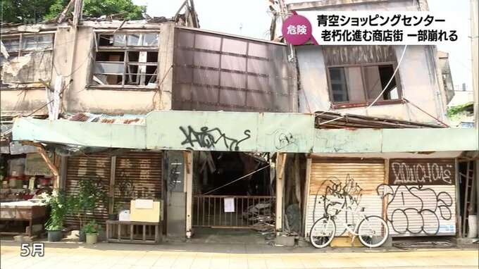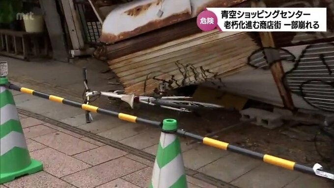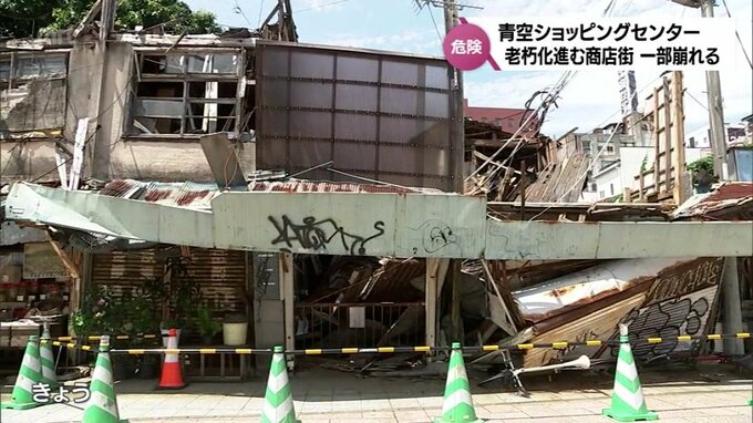 宮崎市にある商店街、「青空ショッピングセンター」。今年5月の段階でも建物が傾いていましたが、6日、訪れてみるとさらに一部が倒壊していました。