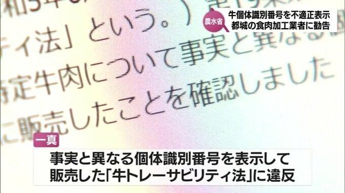 事実と異なる個体識別番号を表示して牛肉を販売 都城市の食肉加工業者に是正勧告 2023年7月21日(金) 19:00 国内 農林水産省九州農政局は、都城市の食肉加工業者が事実と異なる個体識別番号を表示して牛肉を販売したとして、業者に対し是正勧告を行いました。是正勧告を受けたのは、都城市小松原町の食肉加工業「一真」です。九…
