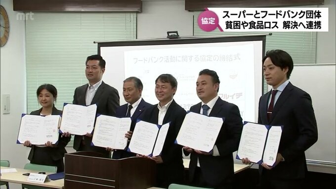 貧困や食品ロス解決目指し 宮崎県内のスーパー5社とフードバンク団体が連携協定 2023年7月26日(水) 19:00 国内 貧困問題や食品ロスの問題解決へ連携して取り組みます。宮崎県内にあるスーパー5社とフードバンクの3つの団体が連携協定を結びました。26日は県内でスーパーを運営する「ハツトリー」や「マルミヤストア」などスー…