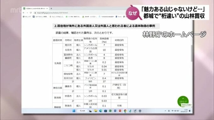 林野庁が公開している全国の買収事例と比べても、その規模は桁違いだ。