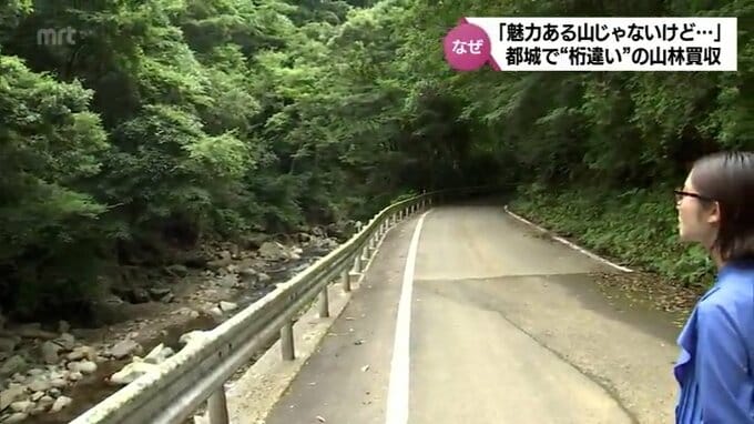 「こちら両隣の森林が外国資本が買収したとされるもので、左手には水が流れていて、ずっと川沿いに道路がつながっています。両脇に広がる山林を見てみますと、無造作に木が生えていて、とても整備されている山林とは思えません」