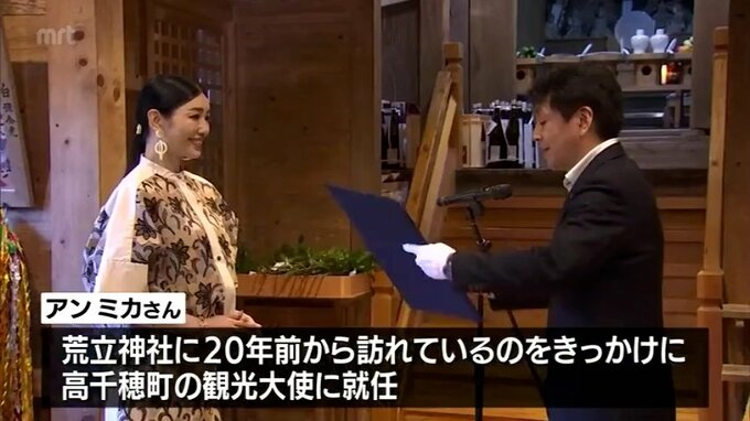 高千穂町の観光大使にアンミカさんが就任 荒立神社で委嘱式 2023年7月29日(土) 19:00 国内 モデルでタレントのアンミカさんが、高千穂町の観光大使に就任し、委嘱状の交付式が行われました。モデルでタレントのアンミカさんは、芸事の神様として知られるアメノウズメノミコトが祀られている高千穂町の荒立…