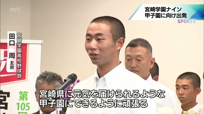 MRT SPORTS UP! 夏の甲子園初出場 宮崎学園ナインが出発 3日に組み合わせ抽選会 2023年8月2日(水) 19:00 国内 夏の甲子園に初出場する宮崎学園ナインが、宮崎空港から甲子園に向けて出発しました。2日は宮崎空港で、宮崎学園の崎田忠寛監督や選手たちが参加して、出発式が行われました。式では、県高校野球連盟の中別府勇治…