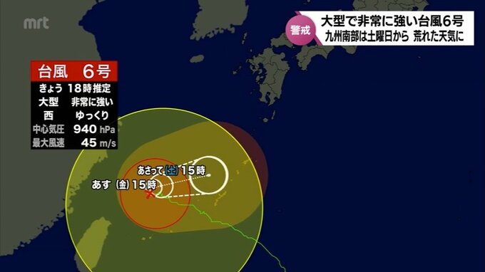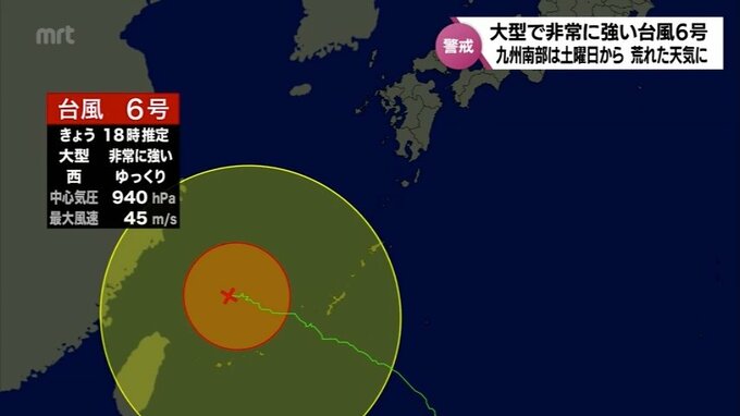 台風6号は、日曜にかけて奄美地方へかなり接近する見込みで、九州南部では土曜日から荒れた天気となる所があります。