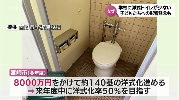 ただ、今年度は、8000万円をかけておよそ140基の洋式化を進めていて、来年度中に洋式化率50%を目指すとしている。